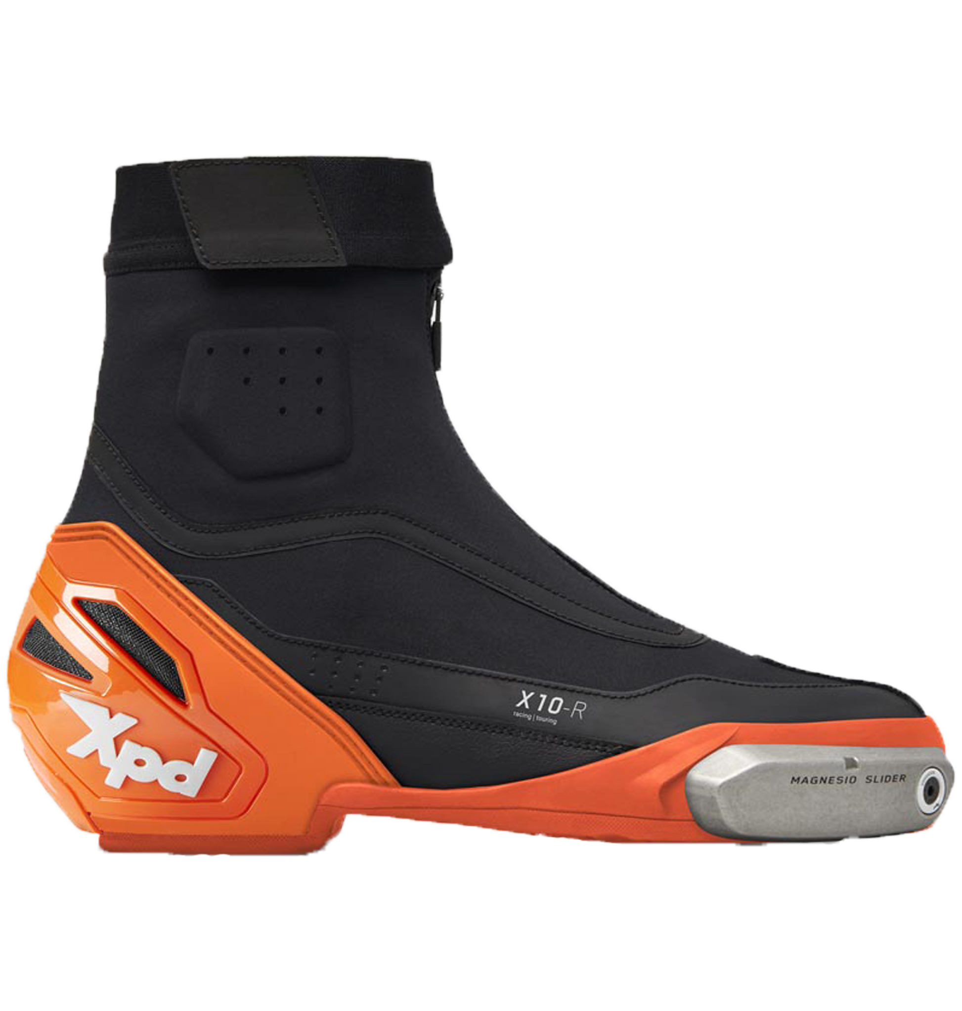 Quieres conducir de forma deportiva, pero durante más tiempo. Quieres estabilidad en el pie, pero no una bota que se convierta en una carga después de dos horas. Para eso está diseñado el XPD X10-R en Negro/Naranja: detalles de protección derivados de la competición se combinan con una configuración de touring que se ha probado en el día a día – con una pernera elástica, cremallera frontal a prueba de agua y una bota interior que te proporciona precisión y sujeción, incluso en motos de sport-touring más pesadas.