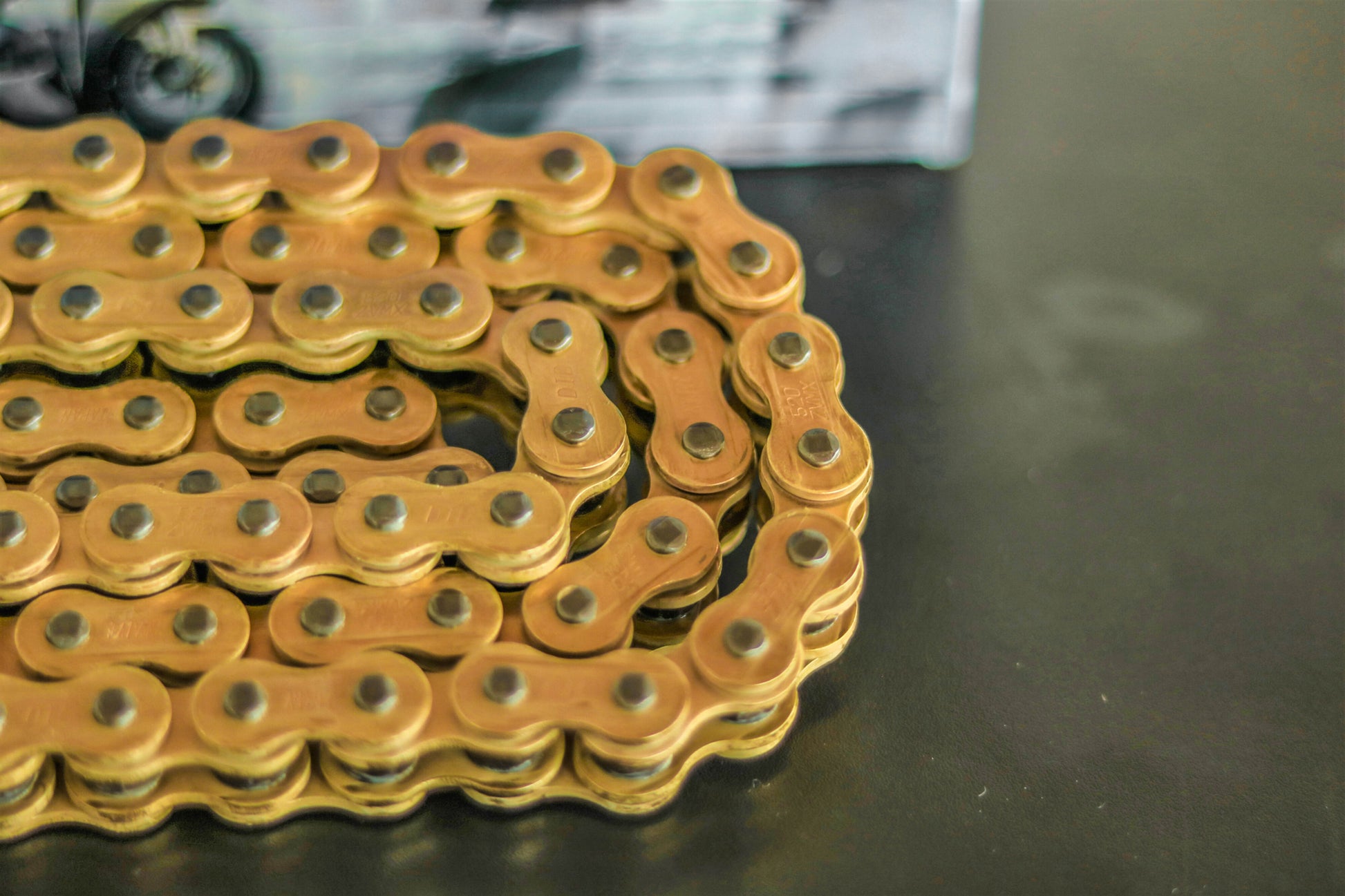 - Diseño elegante: Los eslabones exteriores dorados resaltan el aspecto deportivo de su motocicleta.