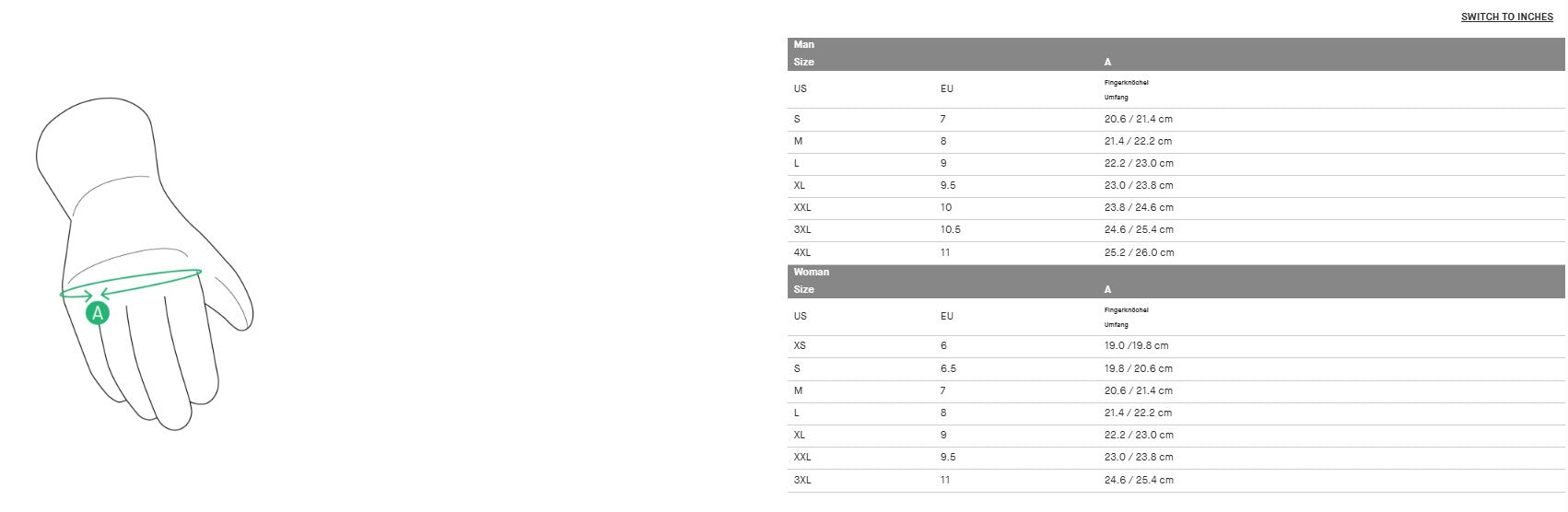 | US | EU | Circunferencia del nudillo |