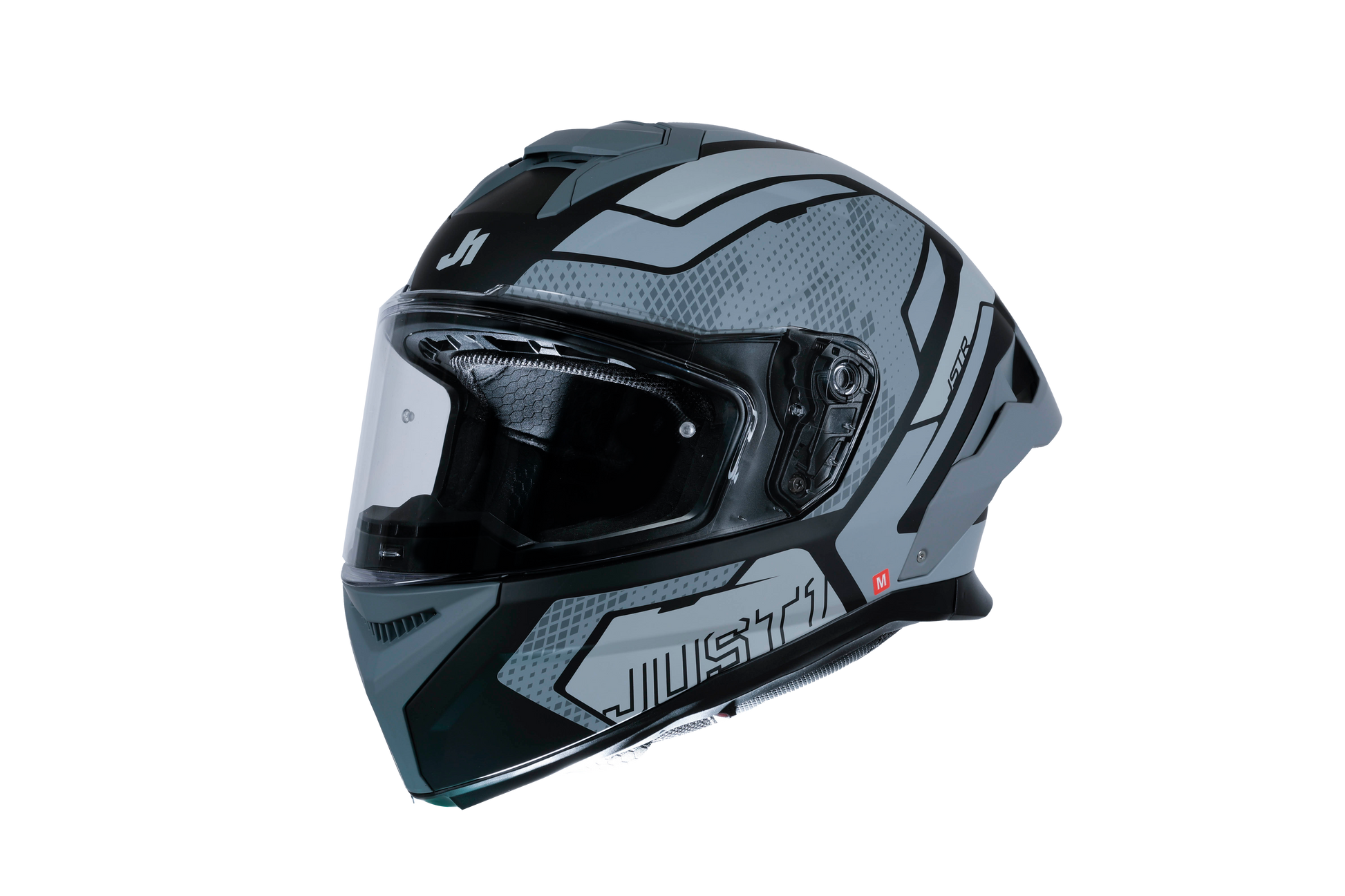 El JUST1 J-STR Unión Gris/Negro Mate combina un acabado mate limpio y deportivo con tecnología moderna de seguridad y confort. Perfecto para pilotos que prefieren un diseño más sobrio pero potente, sin comprometer la protección, el confort y la técnica.