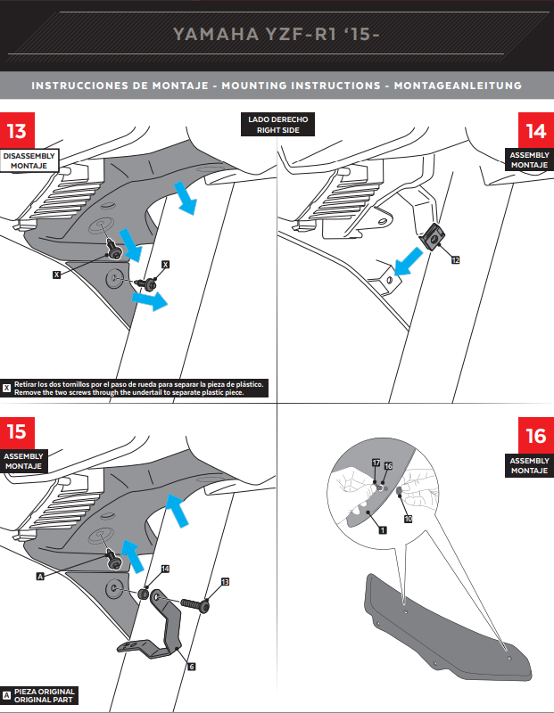 Alas Puig Spoiler Downforce Yamaha YZF-R1/M RN32 RN49 (15-19) 9766