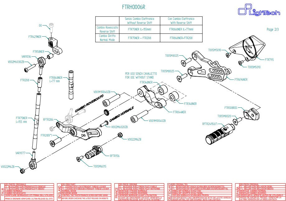 El sistema de reposapiés LighTech R-Fußrastenanlage FTRHO006R para la Honda CBR 1000 RR (2008–2019) combina una fabricación de alta calidad, versatilidad en ajustes y un diseño deportivo, tanto para la calle como para su uso en pista.