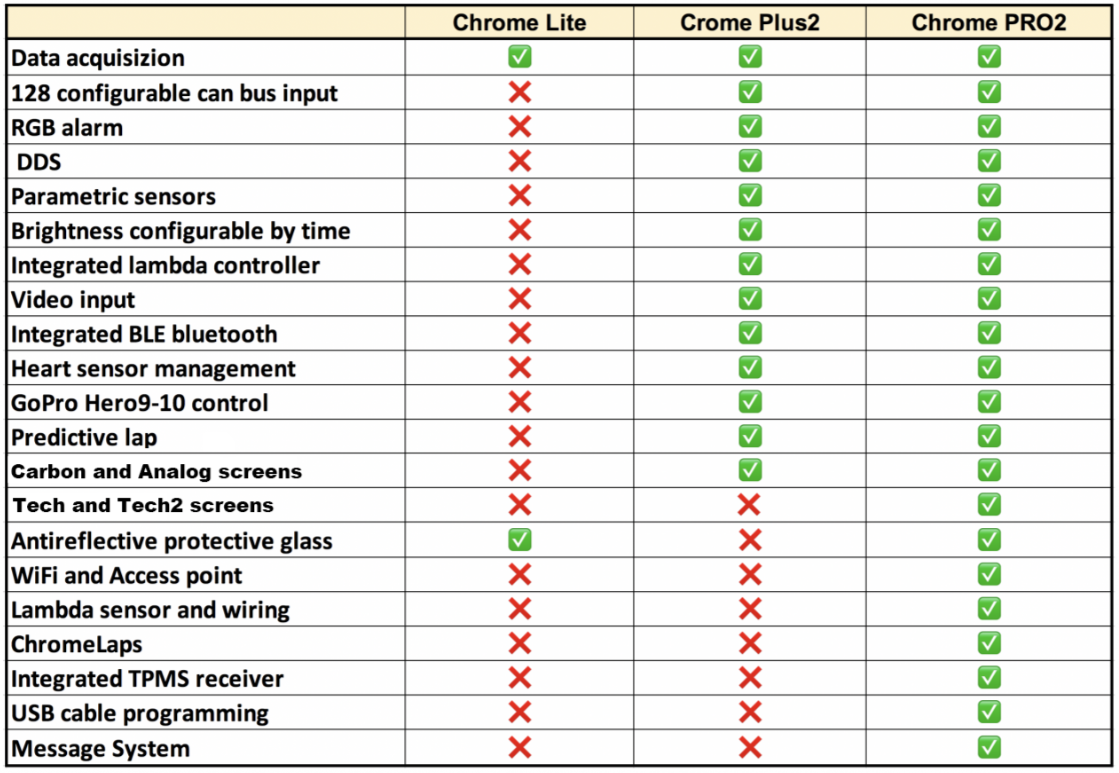 | Funciones | Tablero, cronómetro GPS, registrador de datos, TPMS, entrada de video y análisis de lambda |