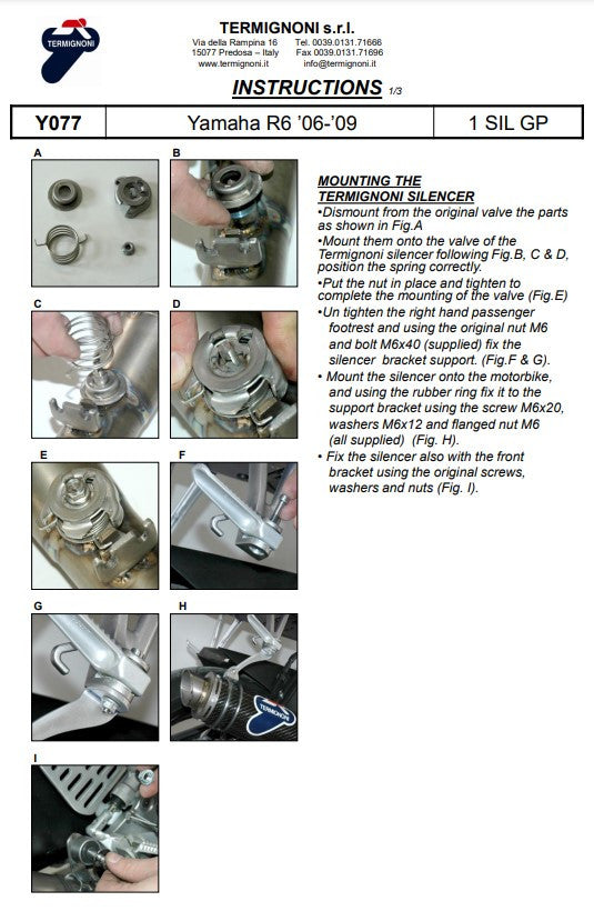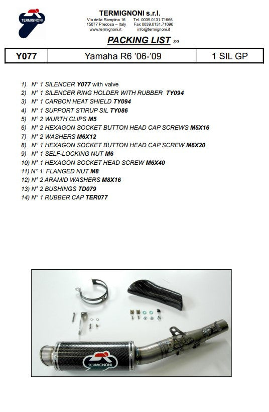 Termignoni Slip-On Classic-GP Alto Yamaha YZF-R6 (06-25) Y077080CR
